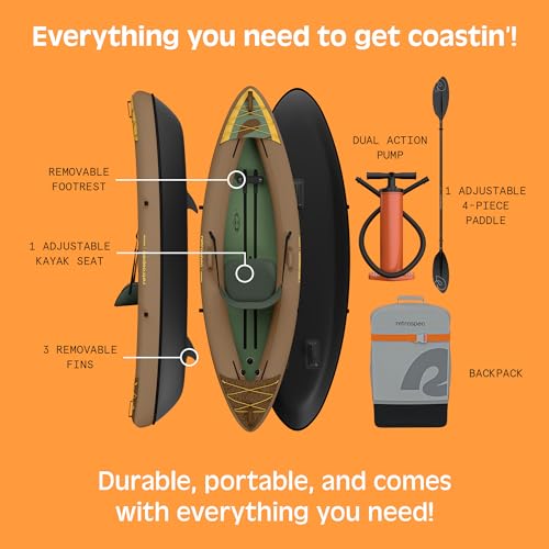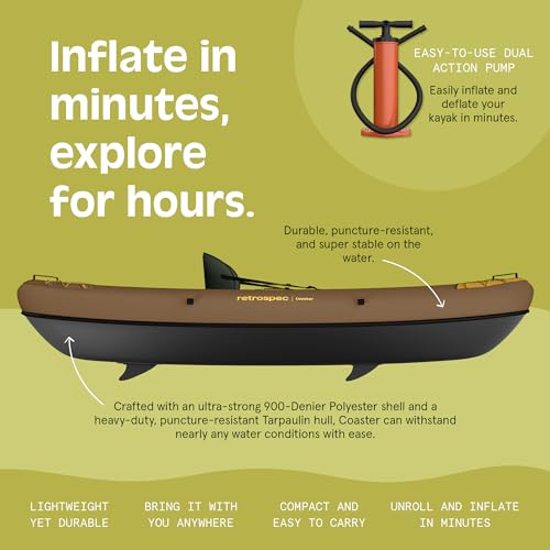 Retrospec Coaster 1 Person Inflatable Kayak, 220lb Weight Capacity, Puncture Resistant, Lightweight Inflatable Kayak for Adults with Pump, Paddle and Easy to Carry Bag